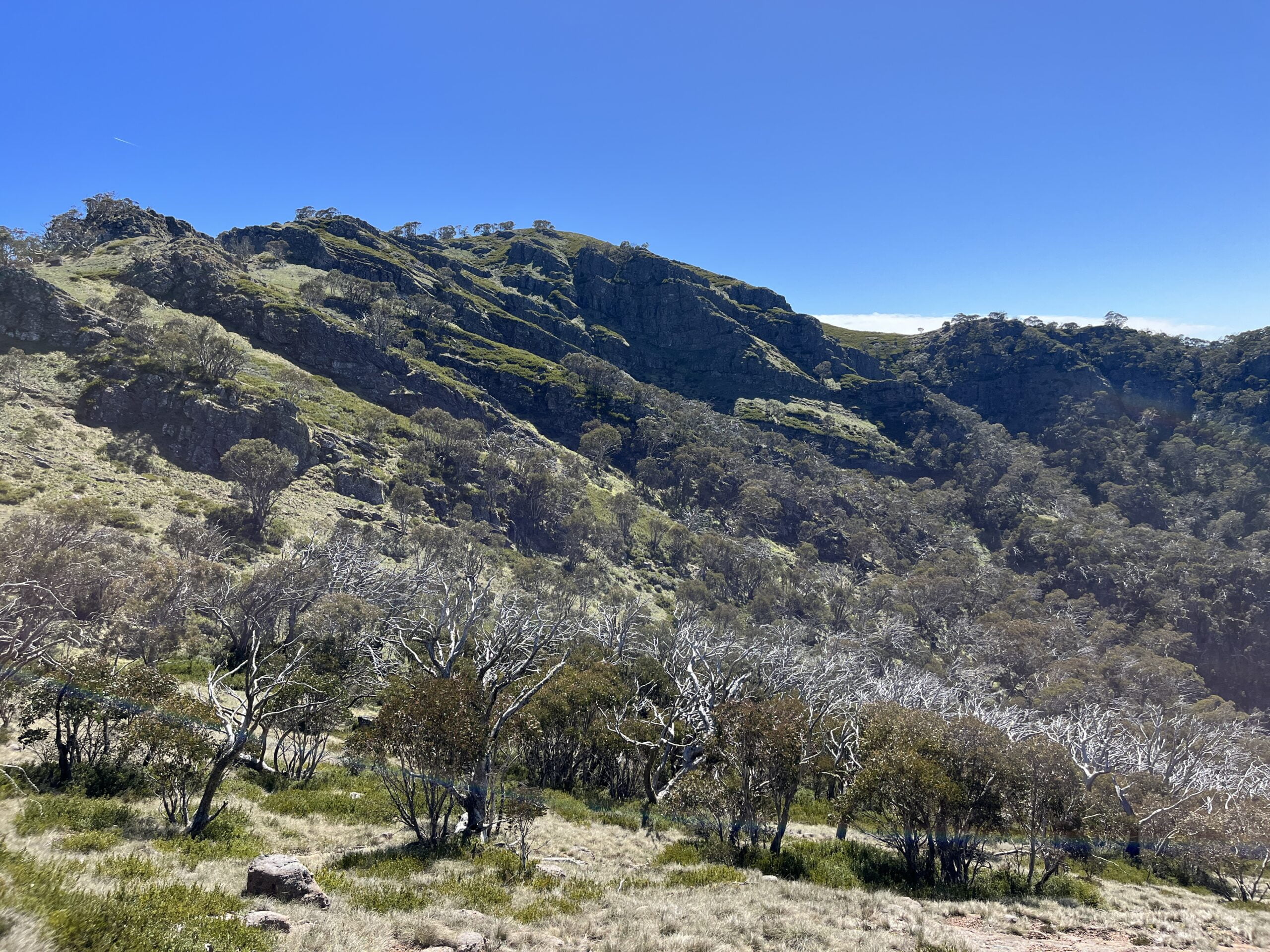 Despite — and because of — the perpetual threat of dense fog, high winds, blistering cold/sun, and toppling off into the abyss, the Crosscut Saw is one of my favourite parts of the High Country. It’s good clear walking along the ‘scenic rim’ of the Terrible Hollow, and it’s very motivating to look across and see my progress.10I have about a billion shots of the Razor from slightly different (but mostly the same) angles to prove it.