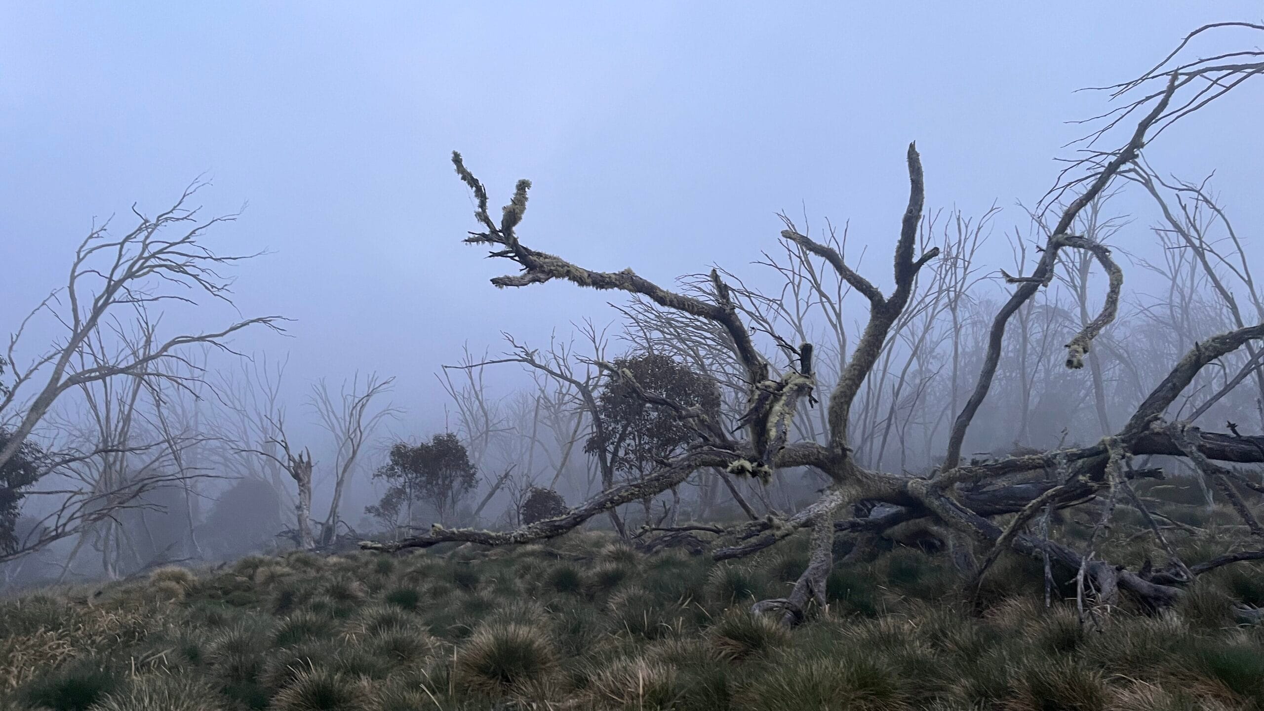 I was pretty confused and scared at this point. I’d started the day fatigued, and the day had been a steady accumulation of worsening conditions. Aside from the brief stint on Zeka Spur Track, I was never moving fast enough to get dry or warm. I’d made so little progress that I didn’t realise how much time had passed. It’d been overcast and gloomy all day, but the closer I got to the top, the harder it was to see through the fog.